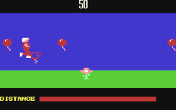 On most levels, there are gaps in the platforms where the character can fall through and land on the platforms below. There are many hazards scattered across the platforms that must be avoided. These range from static objects like trees and houses to moving objects such as jumping policemen and speeding ambulances. If Dennis hits any of these objects, he is flung from his vehicle as it bursts into flames and he must start again (with 'take 2'). If he crashes too many times, he is 'fired'. Points are given in the form of a wage.