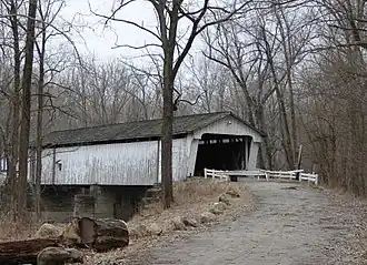 - ^ "Indiana State Historic Architectural and Archaeological Research Database (SHAARD)" (Searchable database). Department of Natural Resources, Division of Historic Preservation and Archaeology. Retrieved May 1, 2016. Note: This includes Nancy Carol Crull (October 1989). "National Register of Historic Places Inventory Nomination Form: Darlington Covered Bridge" (PDF). Retrieved May 1, 2016. and Accompanying photographs.