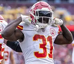 In 2020, Williams finished with 39 carries for 169 yards and a touchdown to go along with 18 receptions for 116 yards.[14] He earned the start for the Divisional Round against the Cleveland Browns due to an injury to Clyde Edwards-Helaire, rushing for 78 yards and catching four passes for 16 yards in the 22–17 victory.[15] In the AFC Championship Game against the Buffalo Bills, Williams rushed for 52 yards and a touchdown during the 38–24 victory.[16] During Super Bowl LV, he had 15 scrimmage yards in the 31–9 loss to the Tampa Bay Buccaneers.[17]