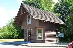 The Dennys' 1853 land claim—640 acres (2.6 km2), standard for a married couple—ran from what is now the Seattle Center grounds (the area where they first settled[8]) east to South Lake Union; its south boundary was present-day Denny Way.[9] In 1882, the Lake Union and Lumber Company established a sawmill (the city's largest[2]) on this land near the southwest corner of Lake Union; Denny bought the mill in 1884, renaming it the Western Mill. The following year, he cut a weir from Portage Bay at the northeast corner of the lake to Lake Washington. This allowed logs to be floated from that larger lake to Lake Union, so that the entire area of Lake Washington became a catchment for his mill.[10][11] Denny operated the Western Mill until 1895; his employees and their families were among the first settlers of the South Lake Union area.[10]