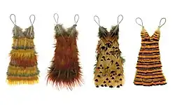 Ellwand's best-selling fashion books for fairies, Fairie-ality: The Fashion Collection from the House of Ellwand and Fairie‐ality Style, were published by Candlewick Press in 2002 and 2009.[8][9][10] The book showcases 150 fashion designs created out of household items, as well as flowers, feathers, leaves, grass, shells, and material found in nature. Fashioned art pieces include dresses, coats, trousers, hats, undergarments, and shoes. The series was so successful that he was asked by Elle Magazine to create a gown for their Christmas issue. Shoe designer Stuart Weitzman, commissioned eight almost-human-sized "fairie" shoes for a window display making the round of his boutiques.[5][11] In 2003, Madame Alexander dolls created a Fairie-ality doll and trunk set.[12] In 2004, Cedco Publishing manufactured two journals, based on the Fairie-ality series.