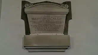 Rowlands died at his home No. 57 Wimpole Street, London, and was buried in the tomb of his parents at St. Mary's Church (1846).[6] He also has a tablet to his memory in the church.[14][15]