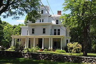 The David S. Baker Estate, also known as Cedar Spring Farm, consists of a pair of related properties at 51 and 67 Prospect Avenue in the Wickford village of North Kingstown, Rhode Island. David Sherman Baker, Jr., a prominent local lawyer and contender for statewide offices built the house around 1882 with his wife. Members of the Baker family built the Italianate, the older of the two houses, 51 Prospect Avenue, which is a 1+1⁄2 story mansard-roofed that is modest in size but features an elaborate wrap around veranda decorated in fairly elaborated Italianate and Second Empire styling. The house at 67 Prospect is much larger 2+1⁄2 story construction, with a 3+1⁄2 story tower and front veranda, again in eclectic Second Empire style. It is one of the largest houses in Wickford, and was referred to by the family as the "Big House". It is unclear whether Baker built the Big House to accommodate his growing family, or as a venue for functions that were part of his political and social activities.[2]