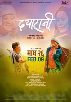 Dayarani (Nepali: दयारानी) is a 2024 Nepali family-drama film written and directed by Maotse Gurung. The film is directorial debut for actor Gurung. It's produced by Mohan Gurung, New IT Venture, Kiran Gurung, Kendra Limbu, Maj. Khusiman Gurung MVO, Capt. Surendra Gurung & Capt. Surya Prakash Gurung under the banner of Maotse Gurung Films and Baasuri Films.[2] It features Dayahang Rai, Diya Pun & Bijay Baral in pivotal roles. The story revolves around the poignant journey of a couple grappling with the challenges of infertility.[3]