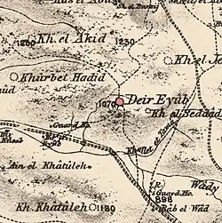 In 1883, the PEF's Survey of Western Palestine described Dayr Ayyub as being a small hamlet situated on a hillside.[12]
