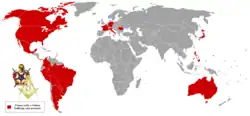 DeMolay is open for membership to young men between the ages of 12 and 21 who acknowledge a higher spiritual power. It has about 12,000 active members spread throughout every continent except for Antarctica.[2] There are active chapters in Canada, Germany, Australia, Japan, the Philippines, Argentina, Aruba, French Guiana, Uruguay, Paraguay, Peru, Bolivia, Brazil, Ecuador (affiliated to Peru jurisdiction), Italy, Romania, Greece (affiliated to Romania jurisdiction), France, Albania, Montenegro, Serbia, Bosnia (affiliated to Serbia jurisdiction), Bulgaria and the United States.[3]