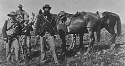 Born on Doornfontein Farm in the Winburg District of the Orange Free State, Koos was the son of Adrianus Johannes Gijsbertus de la Rey and Adriana Wilhelmina van Rooyen. De la Rey was a Boer of French Huguenot, Spanish and Dutch descent.[2] His grandfather, a school teacher and the patriarch of the De la Rey family in South Africa, came from Utrecht, Netherlands. After the Battle of Boomplaats, the family farm was confiscated by the British and the family trekked into the Transvaal and settled in Lichtenburg. As a child De la Rey received very little formal education. The De la Rey family moved, this time to Kimberley after the discovery of diamonds. As a young man, de la Rey worked as a transport rider on the routes serving the diamond diggings at Kimberley.