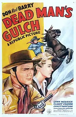 Dead Man's Gulch is a 1943 American Western film directed by John English and written by Norman S. Hall and Robert Creighton Williams. The film stars Don "Red" Barry, Lynn Merrick, Clancy Cooper, Emmett Lynn, Malcolm 'Bud' McTaggart and John Vosper. The film was released on February 12, 1943, by Republic Pictures.[1][2][3]