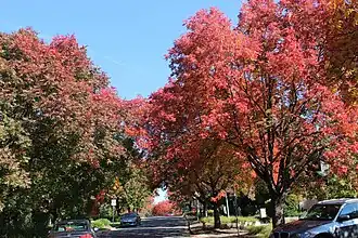 - Canberra Girls' Grammar School Boarding House on Melbourne Avenue, which was the original school building with school rooms on the lower floor and boarders on the upper floor. Construction began on 8 May 1927 and was finished in 1928. It is a two-storey building with an attic room designed in the Interwar Tudor Revival style. The Heritage Council says it is significant as a "fine example of Interwar Old English style architecture and one of the very few in Canberra."[3]