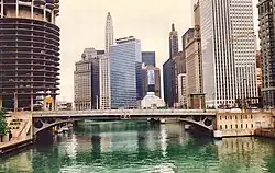 The Dearborn Street Bridge over the Chicago River was built in 1962. It connects the Near North Side with "The Loop." The American Institute of Steel Construction honored the bridge with the 1963 "Most Beautiful Steel Bridge" award in the Movable Span category.