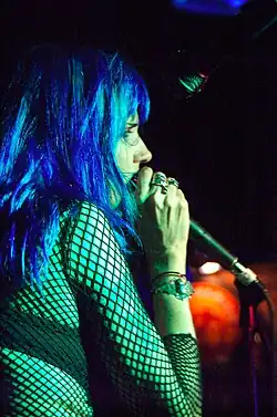 Halloween 1998 saw the launch of Release the Bats, a monthly goth and deathrock club night in Long Beach, California. During its run time it became southern California's most frequented goth night and Long Beach's longest running club night, launching the careers of deathrock bands like Mephisto Walz.[34] The success of the club caused many other deathrock club nights to be established in the following years. This, along with the rise of online music piracy led to the increased popularity of older deathrock bands and establishment of new, international deathrock groups, like Bloody Dead and Sexy, commencing the first deathrock revival. During this period groups like the Phantom Limbs and Black Ice began to merge deathrock with elements of no wave and synthpunk. Many groups from this period, most notably Tragic Black, began to make use of an aesthetic heavily inspired by Batcave fashion.[33] This era was mostly based online, through websites including deathrock.com, post-punk.com, MySpace and LiveJournal. Furthermore, it embraced a broader spectrum of influences, including psychobilly, electronic body music and futurepop.[35]