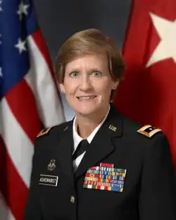 Ashenhurst first enlisted in the Ohio National Guard in 1978 and has served on 20 different assignments during her service.[3][4][5][6] In 1980 she was commissioned as an Engineer Officer through the Ohio Army Guard's Officer Candidate School. She then served as a reconnaissance officer with the 54th support center. Ashenhurst commanded and held staff officer assignments from battalion, company, brigade, and Joint Force Headquarters. More recent assignments include the commanding general, 73rd Troop Command, commander, 237th personnel Services Battalion, and director, Property and Fiscal Operations, United States Property and Fiscal Office for Ohio.[3] One of her more notable assignments was leading the 73rd Troop Command as a commander.[3][4] This squad is one of two in the Homeland Response Force, which are trained to respond to any CBRNE incidents east of the Mississippi River.[4][5][6] After leading the 73rd Troop Command she was appointed to the role of the first female Adjutant General by Governor John Kasich for the state of Ohio in 2011,[1][3][4][5][6][7][8] and subsequently promoted to the rank of brigadier general.[3] The move was approved by the 133rd General Assembly of the Ohio Legislature. In September 2012, General Ashenhurst was promoted to the rank of major general.[3] After retiring from her role as adjutant general in 2015, General Ashenhurst took on a new position as special assistant to the vice chief in Washington D.C. for the National Guard Bureau.[1][3][7] She served under Joseph L. Lengyel, who was the vice chief at the time.