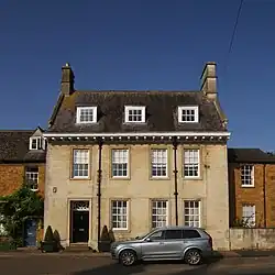 Most of Deddington's older houses are local vernacular buildings. But The Hermitage, a 17th-century house in the Market Place, was re-fronted early in the 18th century with a Cotswold stone ashlar façade and modillioned cornice[61] to make it a fashionable town house. It is Grade II* listed.[62] Stone predominates as the material for Deddington's older houses, but from the 18th century a few were built of red brick. They include the Corner House in High Street, Grade II listed[63] and a terrace in New Street comprising Coniston House, also Grade II listed, [64] as well as Windermere House and Roseleigh.