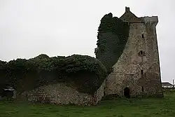 After Colonel Thomas Bourke had fought on the side of King James II & VII in the Williamite Wars, the property was forfeited and given to the Gore family, afterwards Earls of Arran, who renamed it Castle Gore.[1] The tower house had a large 18th-century wing with a rusticated doorway added to it; possibly incorporating a 17th-century range.