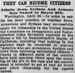 - ^ "Citizenship for Armenians – Circuit Court Declines to Bar Them on Government's Plea" (PDF). The New York Times. 24 December 1909. Retrieved 23 September 2017.