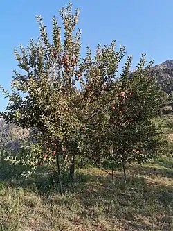 The population lives off animal husbandry, agriculture, fruit growing, horticulture and clover cultivation. The prevalent livestock is goats, sheep, with some cattle, poultry and beekeeping is also common. Donkeys serve for transportation of both goods and people to the pastures, small fields, orchards and homes in the outlying valleys. Apples are the main fruit crop, supplemented by peaches, plums and walnuts.[2][4]