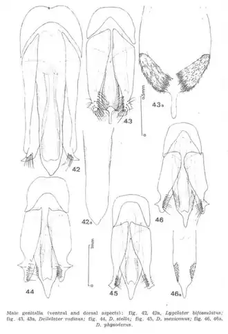 Vesperelater, another genus of the tribe Pyrophorini occurring in western Mexico and Southwestern United States, is distinguished from Deilelater in male genitalia with lateral lobes with well-developed subapical spines.[4]