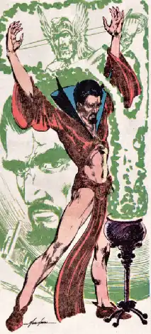 Deimos is a fictional character appearing in DC Comics publications and related media, commonly as a recurring adversary for the superhero Warlord. He is a wicked sorcerer created by Mike Grell debuting in 1st Issue Special #8 (November 1975),[1] and is a distinct character from the Olympian god of the same name, a different DC Comics character who is an enemy of Wonder Woman.
