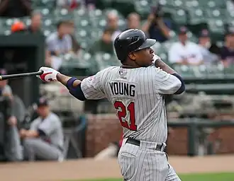 In 2008, Young played in 152 games with the Twins, batting .290 with 10 home runs and 69 RBI.[10] He got off to a slow start in 2009, but had a good September, finishing with 12 home runs, 60 RBI and a .284 batting average.[10]