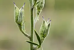 The butterflies Papilio zelicaon (Anise Swallowtail) and Erynnis telemachus (Rocky Mountain Duskywing) visit the flowers of Delphinium geyeri.[21] It is seldom fed upon by herbivorous insects like the common grasshopper Melanoplus sanguinipes due to the alkaloid content of its foliage.[22]