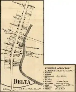 Once part of the town of Western, Delta was situated within the former Delta River Valley associated with the Mohawk River and the Black River Canal. For generations, Delta was a country town full of farms; shops and businesses were eventually built on the western side of the village.[1]