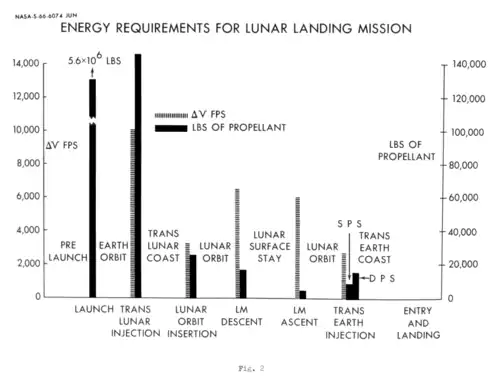 - ^ "Delta-V Calculator". Archived from the original on March 12, 2000. Gives figures of 8.6 from Earth's surface to LEO, 4.1 and 3.8 for LEO to lunar orbit (or L5) and GEO resp., 0.7 for L5 to lunar orbit, and 2.2 for lunar orbit to lunar surface. Figures come from Chapter 2 of Space Settlements: A Design Study on the NASA website.