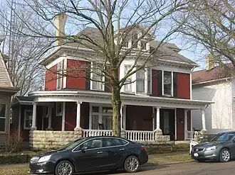 Dr. Charles E. Demand was a charter member of the Mechanicsburg Masonic lodge,[2]: 638  as well as of Mechanicsburg's lodge of the Order of the Eastern Star.[2]: 642  Besides his medical practice, he was a businessman, serving as president of the village's Mutual Loan and Savings Company in the 1910s.[3] He arranged for the construction of the current house in 1900,[1] making him one of several prosperous physicians to build homes in the first block of North Main Street in the period; his colleagues John H. Clark and Oram A. Nincehelser also lived in fine residences in the same block.[4]: 6  After Demand left the property, it became the home of Neil Gest; a farmer and longtime executive of the village's Ohio Grain Company, Gest lived in the house for many years.[5]