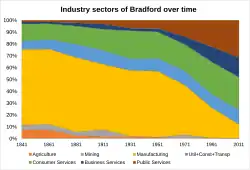 Manufacturing in Bradford has collapsed since the middle half of the 20th century.