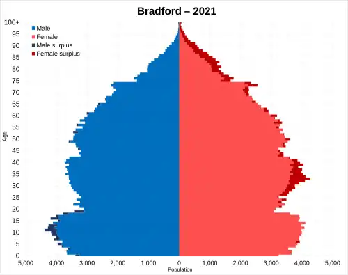- ^ UK Census (2011). "Local Area Report – Bradford Built-up area sub division (E35001211)". Nomis. Office for National Statistics. Retrieved 7 October 2021.