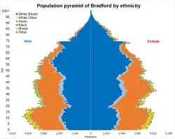The following table shows the ethnic group of respondents in the 1991, 2001 and 2011 censuses in the City of Bradford.