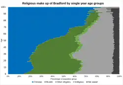 The following table shows the religion of respondents in the 2001, 2011 and 2021 censuses in the City of Bradford.