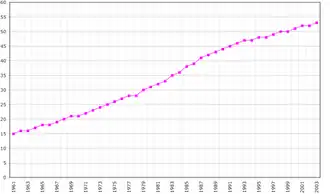 | Year[9] | Population | Live births | Deaths | Natural increase | Crude birth rate | Crude death rate | Rate of natural increase | TFR |