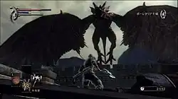The Souls system was a frequent subject of discussion during development, with the current system being decided upon as there being no risk of loss for souls would rob the game of any accomplishment for players.[18] The unconventional death mechanics forced Miyazaki to carefully phrase the Soul mechanic during design document pitches to Sony, as he was worried they would insist on changes if they knew the full details.[16] When creating the high difficulty, Miyazaki kept quiet about that aspect when talking with Sony, as he was sure they would insist upon the difficulty being lowered. He talked it over with Kajii, who agreed to keep that aspect quiet until release.[22] Despite its reputation as a hard game, Miyazaki never intended the game to be hard, instead aiming for a challenging and rewarding experience for players.[18] One scrapped idea was to introduce permanent death, but this was seen by staff as going too far.[1] Variety was added to combat by changing how different weapons affected the character's movements, similar to The Elder Scrolls IV: Oblivion.[16] All the bosses were designed based on a simple premise, in addition to being "varied and exciting".[18]