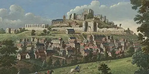 ![]() Aerial view of the castle and town walls | |