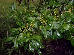 Denhamia bilocularis, commonly known as orangebark, is a tree that is endemic to eastern Australia. It grows to 10 metres high and has leaves with toothed edges that are 3 to 9 cm long and 1.3 to 3 cm wide and elliptic, ovate or obovate in shape.[2]