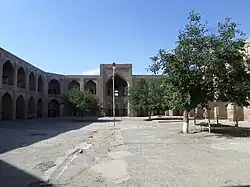 Dating from the 16th century, the Sayyid Atalik Madrasa is one of the largest madrasas in Central Asia. It was described a century later by the Balkh historian Mahmund ibn-Vali in his geographical encyclopedia.[14] From this account we know that the madrasa was initially part of a larger architectural ensemble, but the other buildings have not survived.