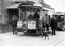 In 1888 the first practical electric street railway was installed by Frank J. Sprague in Richmond, Virginia. His improved designs for a spring-loaded trolley pole, for mounting streetcar motors, and for better gear designs finally made the electric streetcar profitable.[3] Taking note of this success, the Denver Tramway decided to build an electric street car line into South Denver and set up a subsidiary, the South Denver Cable Railway, to operate it. This line proved to be so successful that the Denver Tramway decided to electrify all of its cable lines even though they had years of life left in them. King writes, "The operating expense of the Tramway when using electricity was 2.2 cents per passenger as compared with an operating expense of 3.4 cents for each passenger carried on its competitor's cable system."[2]