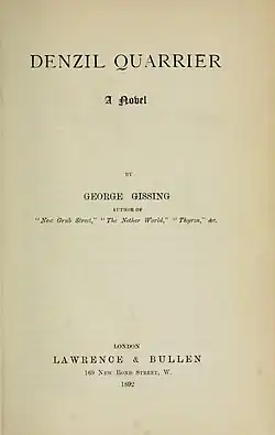 Denzil Quarrier is a novel written by the English author George Gissing, which was originally published in February 1892.