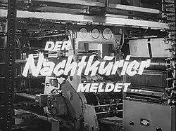 Der Nachtkurier meldet… is a German bi-weekly television series that aired 42 episodes on SDR from October 31, 1964 to July 23, 1966.[1][2][3][4][5]