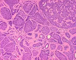 Micrograph of a dermal cylindroma in H&E stain. -