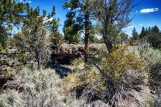 The area near the cave entrance is dominated by Western juniper and Ponderosa pine with big sagebrush, bitterbrush, mountain mahogany, rabbitbrush, and a variety of desert grasses as the main ground cover. Common grasses in this area include Idaho fescue, bunch grass, and bluebunch wheatgrass.[10]