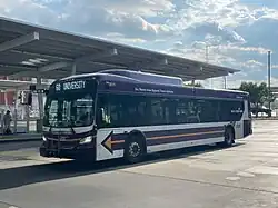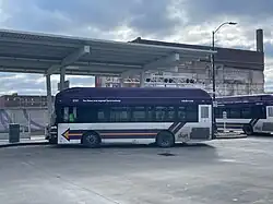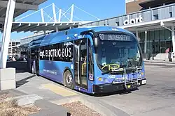 DART began a pilot electric bus program in October 2020, starting with seven Proterra Catalyst buses on route 60 (Ingersoll/University). The pilot program was funded by a grant from the Federal Transit Administration, with a local match from MidAmerican Energy.[7] Due to numerous issues with the buses, including suspension and weatherproofing issues, all seven buses were sidelined in fall 2022 shortly before their major manufacturer warranties expired. Despite attempts from Proterra technicians to address the issues, they were never fully resolved, and the buses were retired from the DART fleet in early 2025.[8][9]