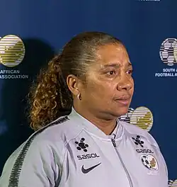 As coach of the South Africa women's national team since 2016, she coached Banyana Banyana to a runners-up finish at the 2018 Women's Africa Cup of Nations (WAFCON), qualifying them for their first ever Women's World Cup tournament, the 2019 FIFA Women's World Cup. In 2022, she coached the team to their first ever WAFCON title, which also qualified them to their second Women's World Cup tournament. At the 2023 Women's World Cup, the team qualified to the knockout rounds of the tournament for the first time in their history, bowing out in the Round of 16 after facing the Netherlands.