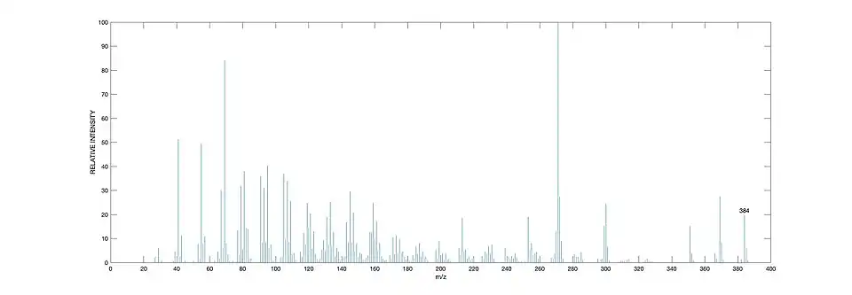 Samples from water sources are first extracted and partially purified before analysis. Sterols are commonly first derivatised after purification. Lipid extracts can be separated into their fragments by ionisation using Gas Chromatography followed by Mass Spectroscopy analysis. Desmosterol has a characteristic m/z peak at 384, as seen in the mass spectra.[6]