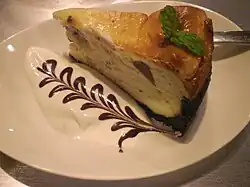 Dessert sauces are used on many desserts such as cake, cheesecake, pound cake, and ice cream.[13] Dry and firm desserts may be enhanced by the use of a dessert sauce that soaks into the dessert, which adds moisture and flavor.[14]