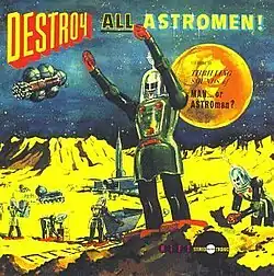 Destroy All Astromen! is a compilation album by the surf rock group Man or Astro-man?. Often cited as their second album, it is actually a compilation of tracks that appeared on 7"s recorded the previous year (1993). The first pressing was a limited red vinyl pressing of 200 copies.[2]
