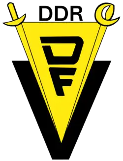 The Deutscher Fecht-Verband (DFV) was the organ of the larger Deutscher Turn- und Sportbund responsible for governing the sport of fencing in East Germany. One of the smaller sports associations in the nation, in 1988 the organization had 6,584 registered athletes and 673 trainers. After German reunification in late 1990 the DFV was absorbed by the German Fencing Federation (DFB).[1]