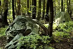 Devín Carpathians (Slovak: Devínske Karpaty, pronounced [ˈɟeʋiːnske ˈkarpati]) is a subdivision of the Little Carpathians mountain range, located entirely within Bratislava, the capital of Slovakia.[1] It is bordered by the city boroughs of Devín from the west, Devínska Nová Ves from the north, Dúbravka from the east and Karlova Ves from the south. Its highest mountain is Devínska Kobyla at 514 m (1,686 ft) AMSL, it is also the highest point in Bratislava. The hills are mostly forested with deciduous trees and most of the area is protected by numerous nature reserves, including two geologically important areas: Sandberg containing sands and sandstones from the Cenozoic Paratethys ocean and Jezuitské Lesy containing rare granitic pegmatite bearing niobium-tantalum oxide minerals.[2]