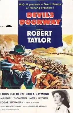 Devil's Doorway is a 1950 American Western film directed by Anthony Mann for Metro-Goldwyn-Mayer, and starring Robert Taylor, Louis Calhern and Paula Raymond. Taylor portrays a Native American who returns home from the American Civil War a hero, having been awarded the Medal of Honor. However, his hopes for a peaceful life are shattered by bigotry and greed. The only film project Jacques Tourneur ever turned down in his whole career.[2]
