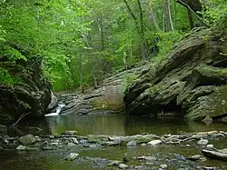 Cresheim Creek is a creek in southeastern Pennsylvania. Rising at Wyndmoor in Springfield Township (in a park near the USDA's Agricultural Research Service Eastern Regional Research Center, adjacent to the border between Montgomery County and Northwest Philadelphia), it runs about 2.7 miles (4.3 km) southwest, passing through part of Northwest Philadelphia and forming the boundary between Mount Airy and Chestnut Hill, before emptying into the Wissahickon Creek at Devil's Pool not far south of the Valley Green Inn.